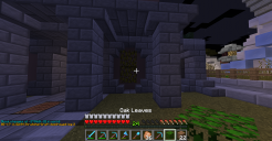 Donc le bon monsieur s'est dit que ça allait être une bonne idée de bloquer la sortie vers la forêt de PNJ avec un gros bloc de cobble + bois + smooth sandstone